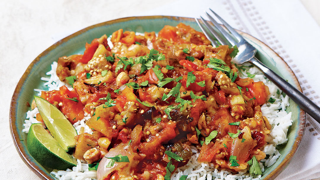 In this spicy, smoky dish from the Punjab region of India, eggplant, onion, and tomatoes are broiled until silky and tender and then mixed with aromatics and spices. Serve fearlessly over rice (don’t be afraid of carbs).