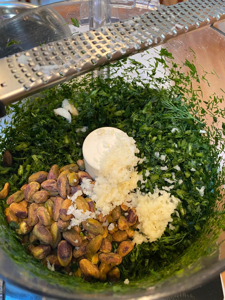 I hadn’t thought about carrot-top pesto in quite some time until I bought a lovely bunch of carrots for a recipe I was developing for one of my clients. The tops were intact, healthy-looking, and emerald green. It’s as if they were inviting me, actually daring me to make them into something delicious (you know how sassy those carrots can be).