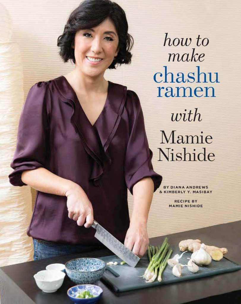 I met Chef Mamie Nashide in May of 2015 after enrolling in a ramen cooking class hosted by the New York Women’s Culinary Alliance, an organization of professional women in the food industry. I’ve always been captivated by ramen, and when the opportunity arose to take the class, I was very excited. A handful of us arrived at Japanese Cooking Studio, Mamie’s facility in New York City, and we participated in an excellent learning experience: The art of preparing ramen.